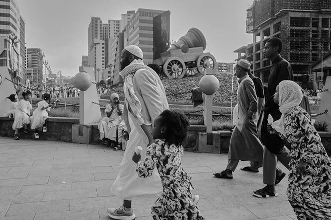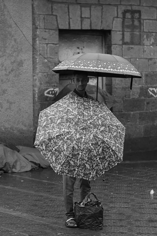 Alongside his documentary work, Nahom continues to develop his street photography practice, capturing spontaneous and unfiltered moments that reflect the complexity of urban life.