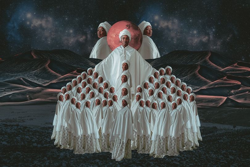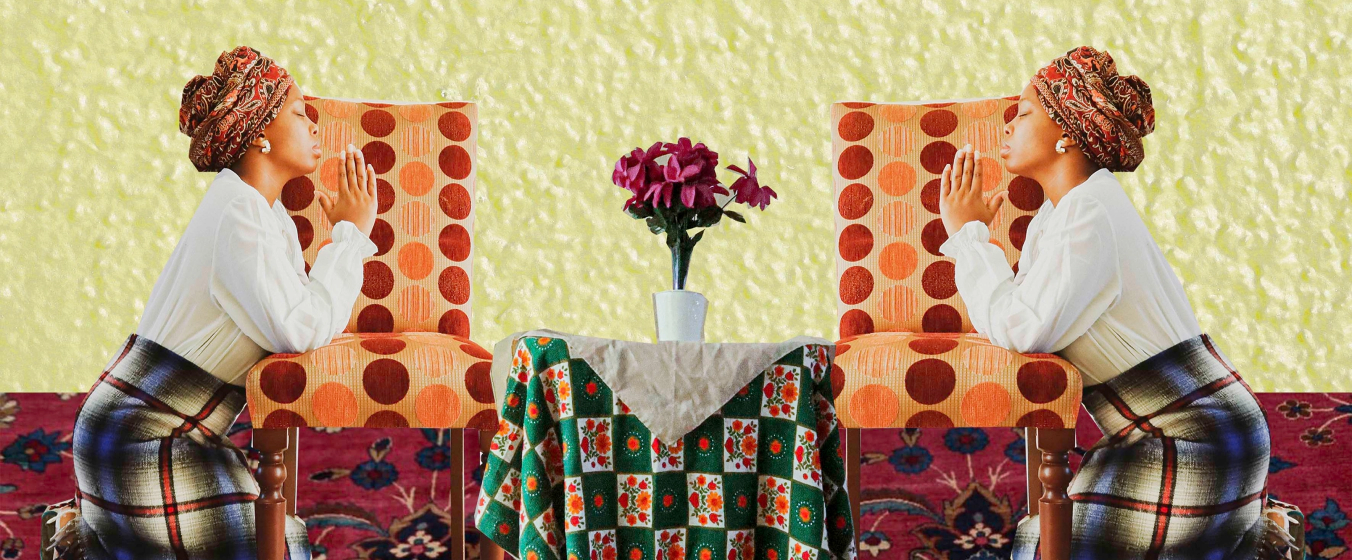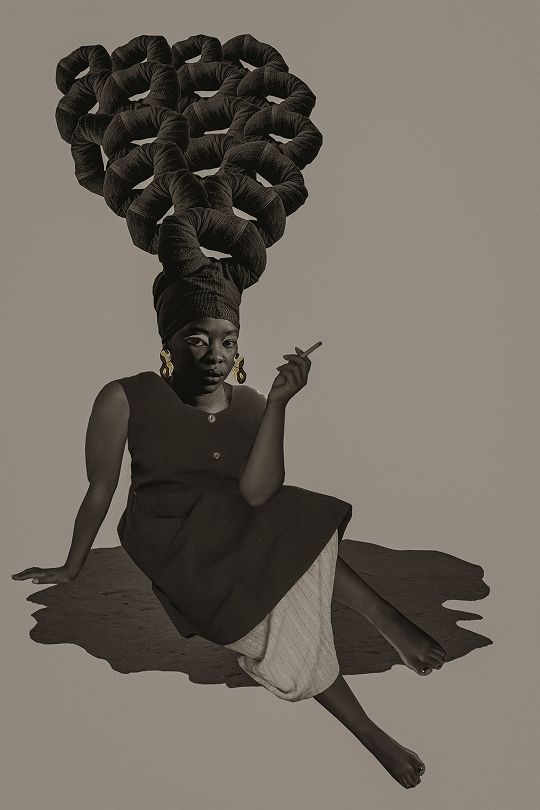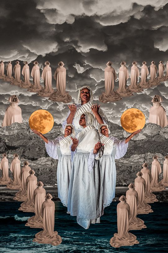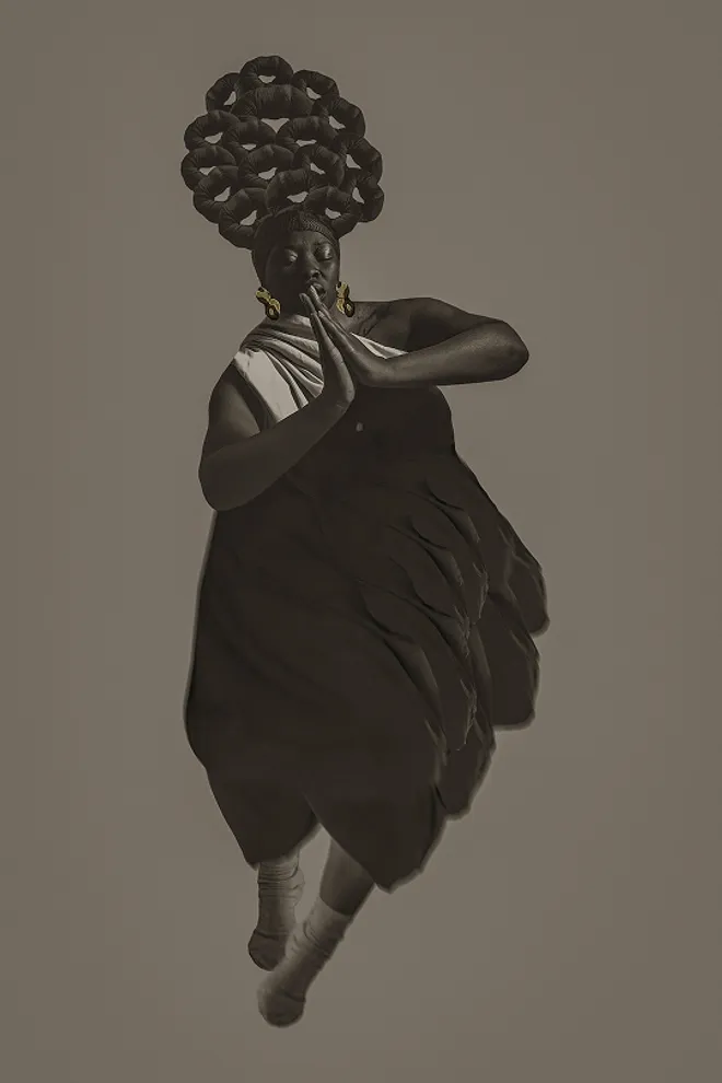 Self-portraiture is both a starting point and a grounding force in Mongale’s practice. Using her own body allows her to be present, vulnerable, and open to the stories she carries, both her own and those of other women. Her digital collages bring together various elements to build layered, textured images that reflect the complexity of her inner world.